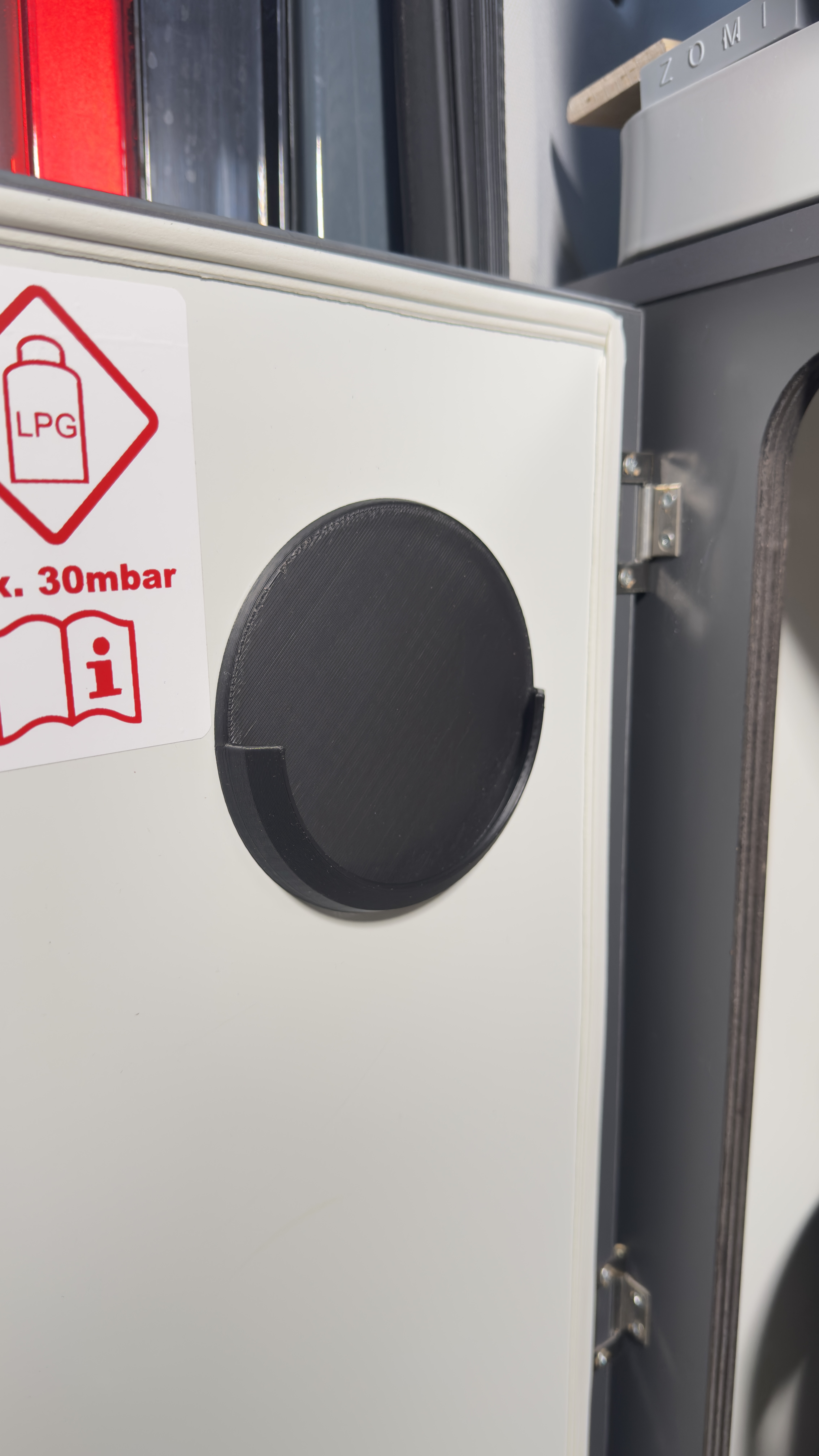 Mit diesem praktischen Halter für die Schutzkappe haben lose herumliegende Kappen im Camper oder Wohnmobil ein Ende. Der Halter wird im 3D-Druck gefertigt und lässt sich dank mitgeliefertem doppelseitiges 3M-Montageband flexibel und sicher an nahezu jedem gewünschten Ort befestigen - ohne Bohren oder Schrauben.