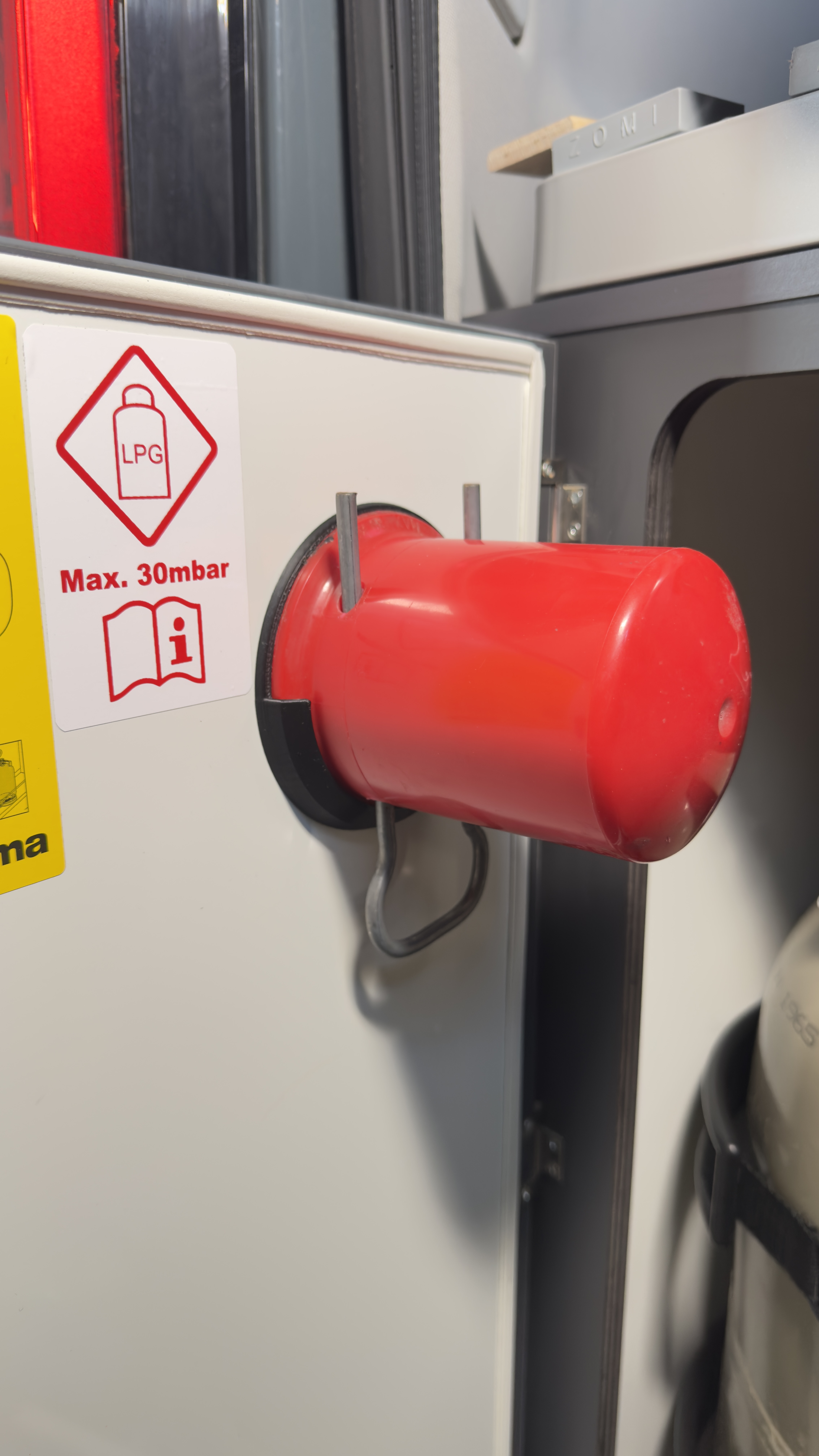 Der Halter sorgt dafür, dass die Schutzkappen deiner Gasflachen immer griffbereit und ordentlich verstaut sind. Ideal für den Einsatz im Gaskasten, Stauraum oder Technikfach im Camper.